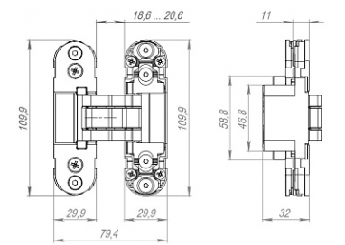 ПЕТЛЯ СКРЫТАЯ KUBICA Hybrid K6380/38 NR черный