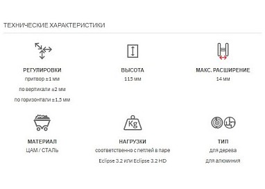 | Регулировки | притвор ±1 мм по вертикали ±2 мм по горизонтали ±1,5 мм |