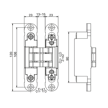 Универсальная реверсивная петля Otlav Invisacta 3D 120x30 мм: для левых и правых дверей, при монтаже петель по середине толщины дверного полотна...