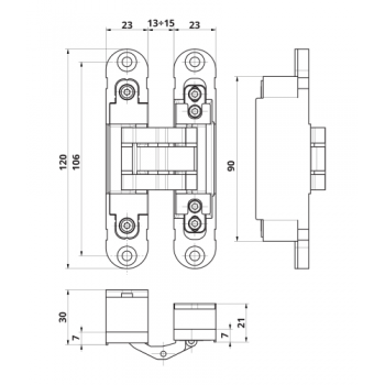 Универсальная реверсивная петля частично окрашенная Otlav Invisacta 3D 120x30 мм: для левых и правых дверей, при монтаже петель по середине...